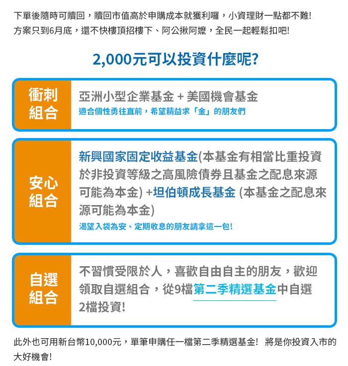 | 本境外基金經金融監督管理委員會核准或申報生效在國內募集及銷售,惟不表示絕無風險。基金經理公司以往之經理績效不保證基金之最低投資收益;基金經理公司除盡善良管理人之注意義務外,不負責本基金之盈虧,亦不保證最低之收益,投資人申購前應詳閱基金公開說明書。 |