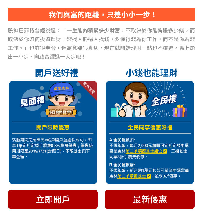 | 投資基金所承擔之相關風險及應負擔之費用(含分銷費用)已揭露於基金公開說明書及投資人須知中,投資人可至境外基金資訊觀測站( http://www.fundclear.com.tw )下載,或逕向本公司網站 ( http://www.Franklin.com.tw )查閱。 |