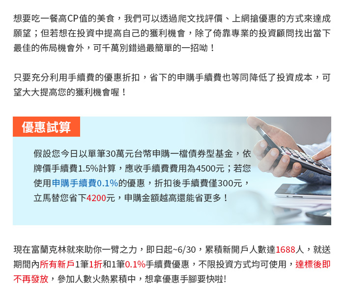 | 投資基金所承擔之相關風險及應負擔之費用(含分銷費用)已揭露於基金公開說明書及投資人須知中,投資人可至境外基金資訊觀測站( http://www.fundclear.com.tw )下載,或逕向本公司網站 ( http://www.Franklin.com.tw )查閱。 |
