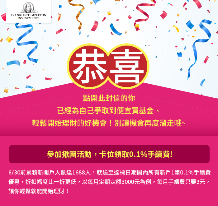 基金的配息可能由基金的收益或本金中支付。部分基金進行配息前未先扣除應負擔之費用。任何涉及由本金支出的部份,可能導致原始投資金額減損。由本金支付配息之相關資料已揭露於本公司網站,投資人可至本公司網站(https://www.Franklin.com.tw)查閱。