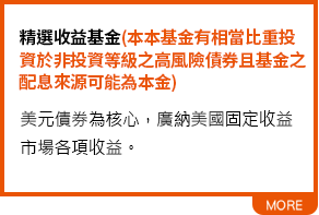基金的配息可能由基金的收益或本金中支付。部分基金進行配息前未先扣除應負擔之費用。任何涉及由本金支出的部份,可能導致原始投資金額減損。由本金支付配息之相關資料已揭露於本公司網站,投資人可至本公司網站(