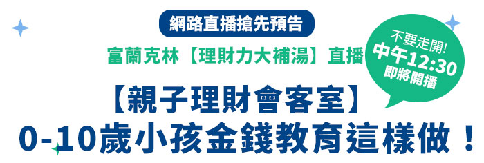 【1/7直播開放報名】親子理財會客室:0-10歲小孩金錢教育這樣做!