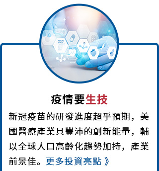 疫苗普及可望引領美國經濟重回正軌,並帶動企業獲利成長加速,輔以財政及貨幣政策持續寬鬆,有利延續美股多頭行情,其中,美國的科技及醫療創新能力居世界領先地位,將持續擔綱美股的領頭羊。