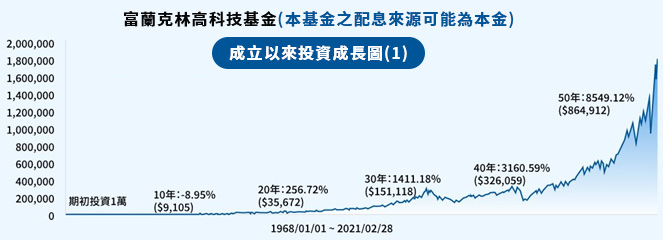 成立日1968/1/1至2021/2/28之累積報酬率。(2)得獎紀錄取自理柏、財團法人台北金融研究發展基金會、晨星、晨星暨Smart智富、指標雜誌,截至2021年2月底,獎項評選期間截至頒獎年度之前一年年底(指標台灣基金獎截至九月底)。查詢完整得 獎記錄請見www.franklin.com.tw/Award.html。
