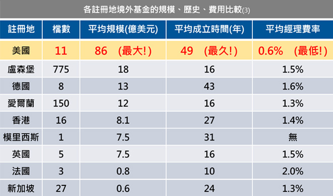 台灣核備的境外基金,視註冊地不同,平均經理費用為1.3-2%,美國註冊基金僅0.6%。