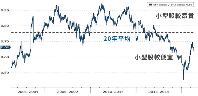 理由二、美國小型股評價相對便宜,仍低於20年均值
