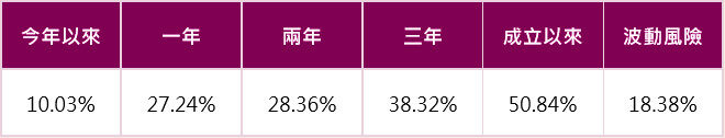 資料來源:理柏資訊,台幣計價 ,截 至 2021/9/30 ,波動風險為過去三年月報酬率的標準差年化值。美元避險累積型股份成立於 2018/4/6。基金過去績效不代表未來績效之保證。