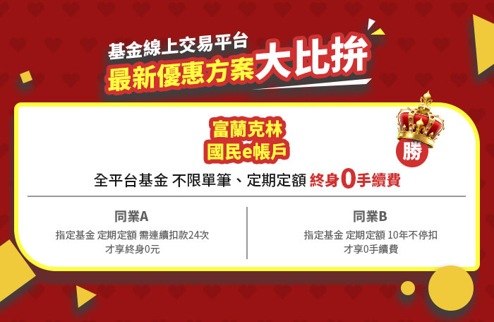 本公司保留是否接受開戶,以及取消、中止、修改活動內容、規則、時間或暫停所有活動權利,詳細活動辦法請依富蘭克林基金理財網