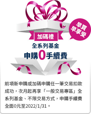 註1.既有投組之定期定額續扣或變更(增加)扣款金額不適用上述優惠。