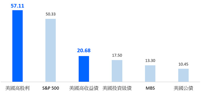 現階段即採取上述雙高策略,股權部位加碼公用事業、金融及醫療等高股利股票,債券部位則側重受惠景氣復甦的高收益債,為投資人追求穩定收益與資本增值機會,建議您可持續將其列為投資組合的核心要角。