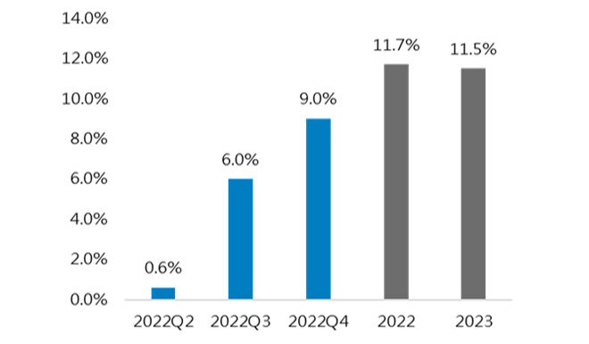 根據FactSet(6/10)統計,史坦普500科技類股第二季每股盈餘(EPS)預估成長下修至0.6%,但放眼第三、四季獲利年增率預估將回升至6%、9%,今明兩年獲利有望呈現雙位數成長,顯示科技企業獲利動能仍然強勁,有利科技股未來逐步展開修復行情。