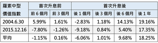 羅素中型價值指數在Fed首次升息前後表現