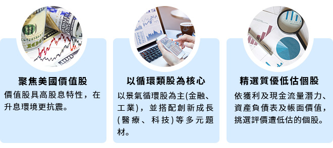 選股策略聚焦資產負債表健康及評價具吸引力的股票,是一檔秉持價值投資哲學的美股基金。