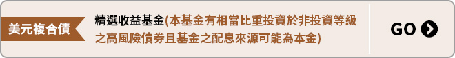 由於非投資級債券之信用評等未達投資等級或未經信用評等,且對利率變動的敏感度甚高,故本基金可能會因利率上升、市場流動性下降,或債券發行機構違約不支付本金、利息或破產而蒙受虧損。本基金不適合無法承擔相關風險之投資人。本基金較適合投資屬性中風險承受度較高之投資人,投資人投資以非投資等級債券為訴求之基金不宜占其投資組合過高之比重,投資人應審慎評估。