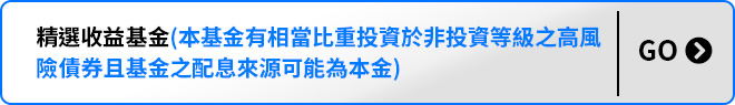 由於非投資級債券之信用評等未達投資等級或未經信用評等,且對利率變動的敏感度甚高,故本基金可能會因利率上升、市場流動性下降,或債券發行機構違約不支付本金、利息或破產而蒙受虧損。本基金不適合無法承擔相關風險之投資人。本基金較適合投資屬性中風險承受度較高之投資人,投資人投資以非投資等級債券為訴求之基金不宜占其投資組合過高之比重,投資人應審慎評估。