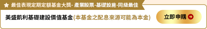 獎項統計截至2023年2月24日,資料來源為指標、晨星、標準普爾、理柏、晨星暨Smart智富、台北金融研究發展基金會, 獎項評選期間截至前一年度年底,指標獎項評選期間截至各頒獎年度前ㄧ年9月底止。基金過去績效不代表未來績效之保證。