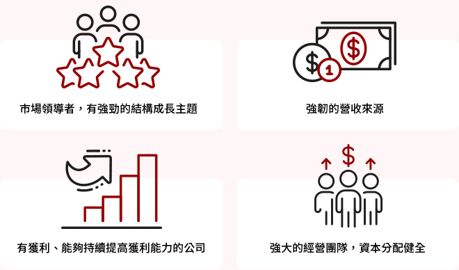 藉由量化標準篩選出初始清單後,進行更深入的基本面研究,精選出: