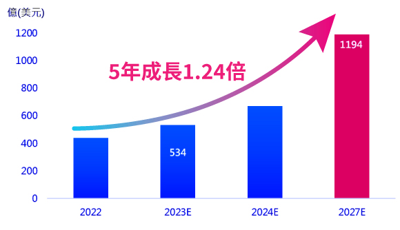 知名研究機構Gartner最新預測指出,2023年全球用於人工智慧(AI)的半導體晶片營收預計將較2022年成長20.9%,達到534億美元。2023至2027年AI晶片營收將翻倍,上看1, 194億美元,成長速度驚人。
