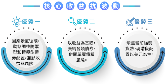 基金平均信評為A-,超過7成配置於投資等級債,適合作為資產配置中的防禦部位。投資人可依個人收益目標及風險考量設定在資產中的配置比例。