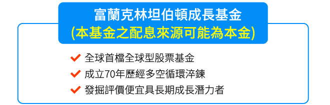 基金的配息可能由基金的收益或本金中支付。任何涉及由本金支出的部份,可能導致原始投資金額減損。部份基金進行配息前未先扣除應負擔之費用。由本金支付配息之相關資料已揭露於本公司網站,投資人可至本公司網站(https://www.franklin.com.tw)查閱 。