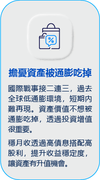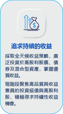 現階段透過投資債券為主、高息股票為輔的投資組合來實現收益。