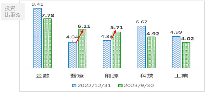 現階段側重獲利與現金流具韌性且有能力管控成本的企業,產業均衡布局、攻守兼備。近月加碼能源、並逢低布局醫療產業。